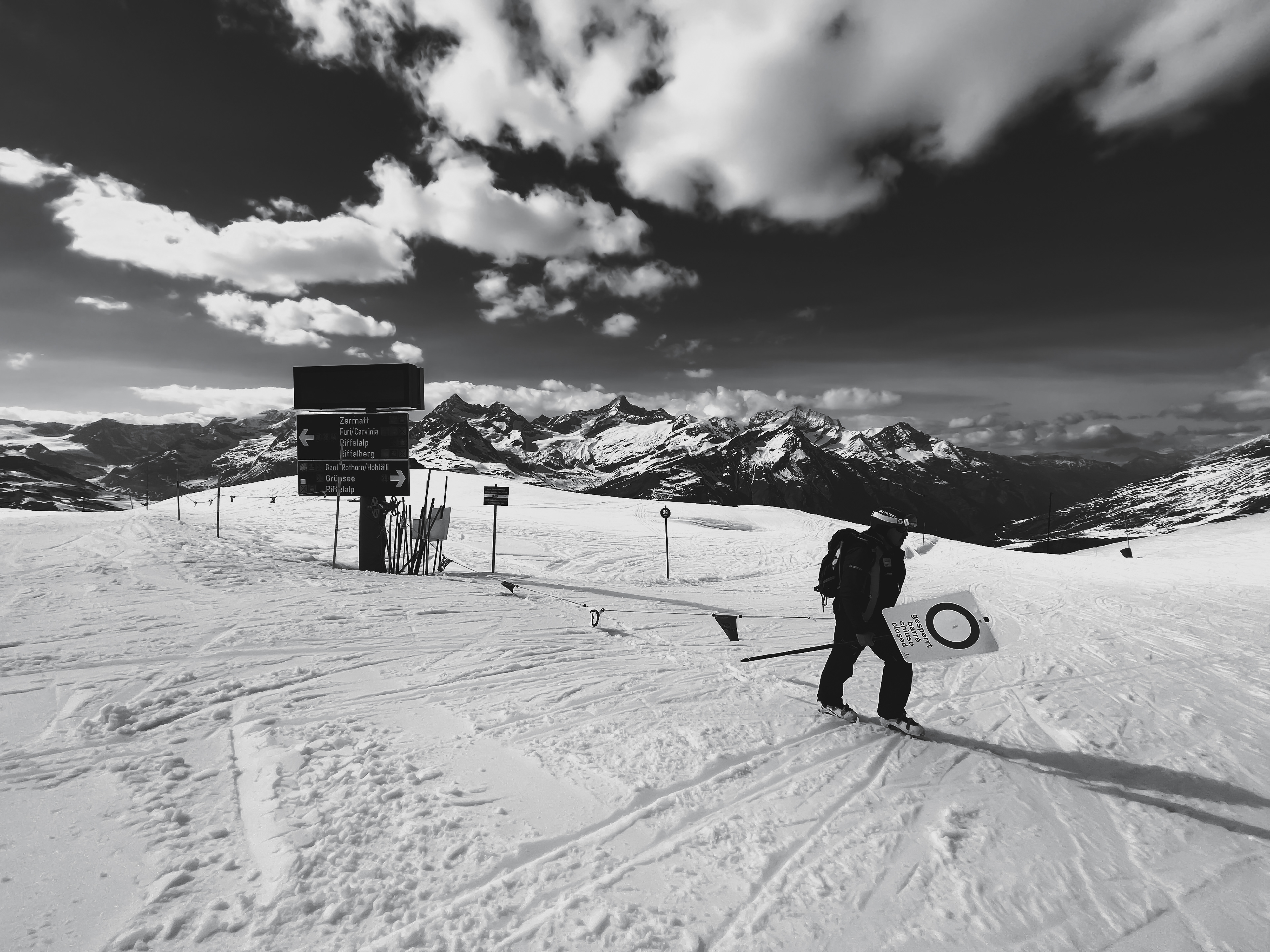 À la fin de la journée, un pisteur ferme l’accès à ski entre les montagnes de Gornergrat et Sunnegga.